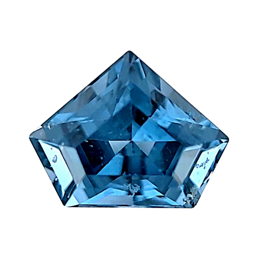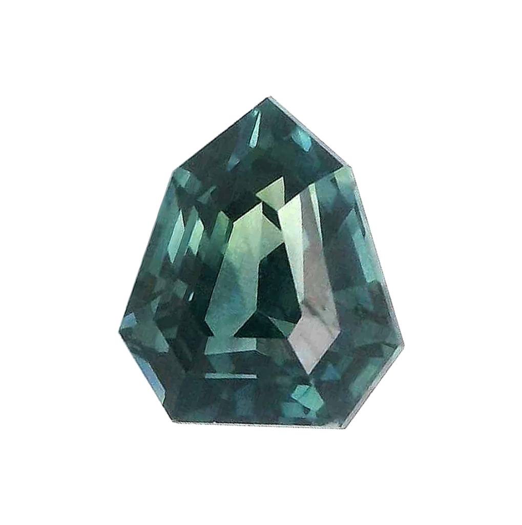 In this pendant design, a shield-shaped sapphire and a shield-shaped spinelare arranged in a vertical composition . Set between them, an elongated white baguette diamond creates a clean line of light that visually separates the two gemstones while tying the design together.