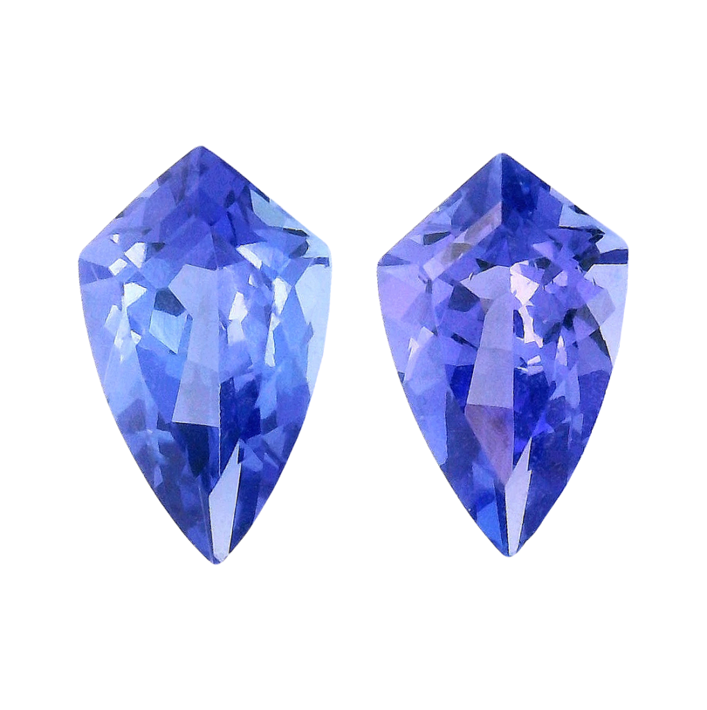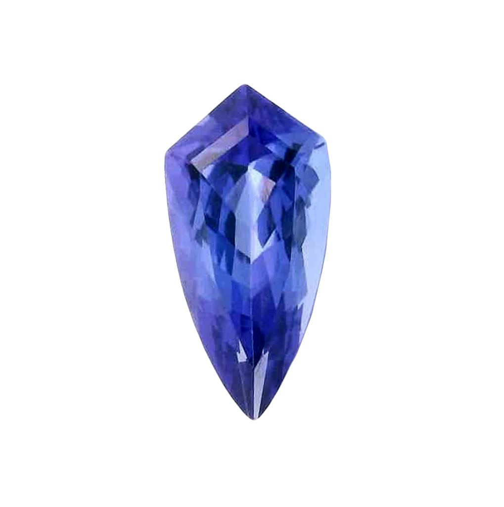 These kite-cut diamonds sit atop a pair of shield shaped Tanzanites creating an elegant drop earring that balances edgy geometric gemstones with soft metal curves.