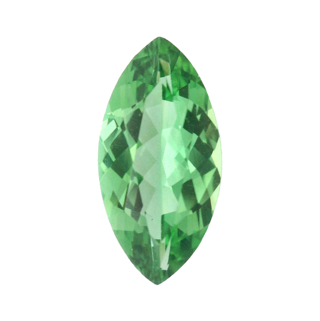 In this example, a marquise-shaped diamond is paired with a marquise Chrome Tourmaline. The shared cut creates harmony, while the contrast between diamond brilliance and saturated green color keeps the design visually engaging.
